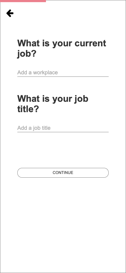 Summary: Taking in the feedback from my user tests, I revised the onboarding structure along with how the user profile is presented on the app so that it moves away from the style of a dating app to a more professional one.